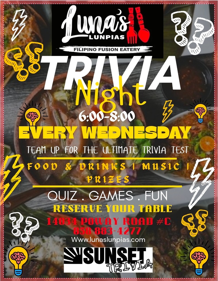 Trivia Nights with Sunset Trivia and we’re ready for a fun one! Come through for our delicious, flavor-packed Filipino fusion eats 🍜🔥, drinks, specials, and prizes at the end of the night 🏆
